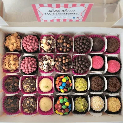 - Ganaches: Chocolate, Salted Caramel, Passion fruit. Dairy Free Available